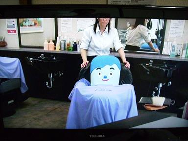 コッシーをさがせ  床屋さんにいるコッシーをさがす