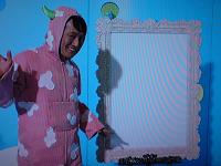 三人の部屋 コッシーが自分と同じ長さのかさを持ってくる。