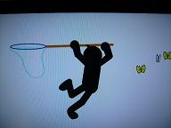 虫取り網でそうっとそうっとそうっと。あ!にげちゃった!